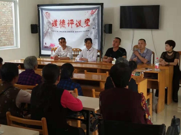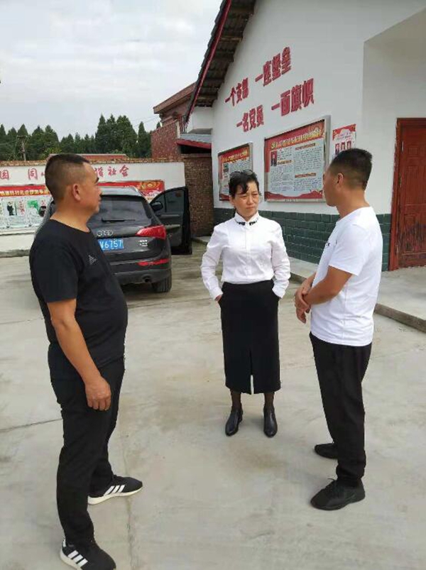 任平蓉女士與村干部討論貓林村的扶貧脫困大計。